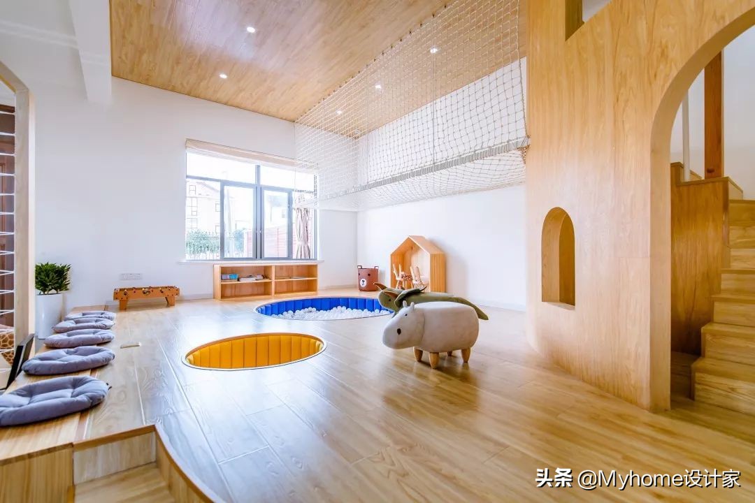 ▲」言言小舍」里設置了小閣樓城堡,拱形開孔計再搭配樓梯,孩子們能在這玩躲貓貓遊戲。