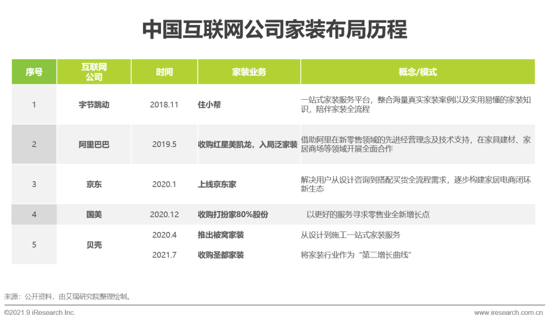 伴隨互聯網時代的到來及互聯網技術的高速發展,家裝企業開始運用信息技術進行線上獲客,顛覆了傳統家裝行業以電話推銷、地推宣傳和媒體投放為主的獲客方式。為追逐時代紅利和行業風口,大量傳統家裝企業紛紛開始進行互聯網布局。互聯網對於傳統家裝行業的革新體現在前端獲客管道與用戶、流程資料的線上化,並未從供應鏈及執行端進行真正優化,技術手段也沒有持續迭代升級,用戶體驗與傳統家裝模式並未產生巨大區別,同時大量企業蜂擁入場導致同質化現象嚴重,馬太效應下,大量小企業因經營不善被洗牌出局。