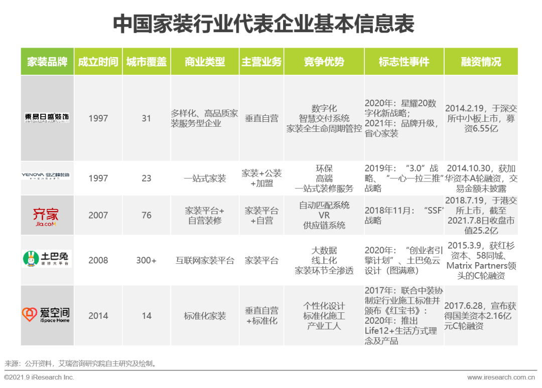 中國家裝行業典型代表企業基本信息