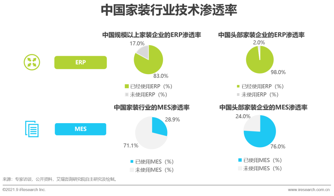 家裝需求中存量房改造的需求比例逐步提升,並開始成為行業增長的新動力,且新型消費群體相對具有更強的個人消費意識,其家裝需求也更為精細,因此通過數字化技術來提升用戶的家裝服務體驗,解決之前由於人工原因帶來的「量房不準、設計時間長」等問題。目前行業頭部玩家如愛空間、東易日盛等通過3D設計軟件和BIM建模軟件來深化自身的設計平台能力,通過ERP等企業資源管理系統來提升內部業務聯動速度、提高業務鏈路效率,通過MES系統來做到設計、採購、施工、驗收全業務的管控。家裝行業整體數字化程度正在快速提升。