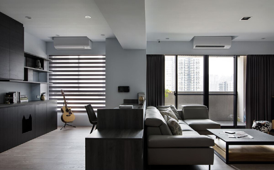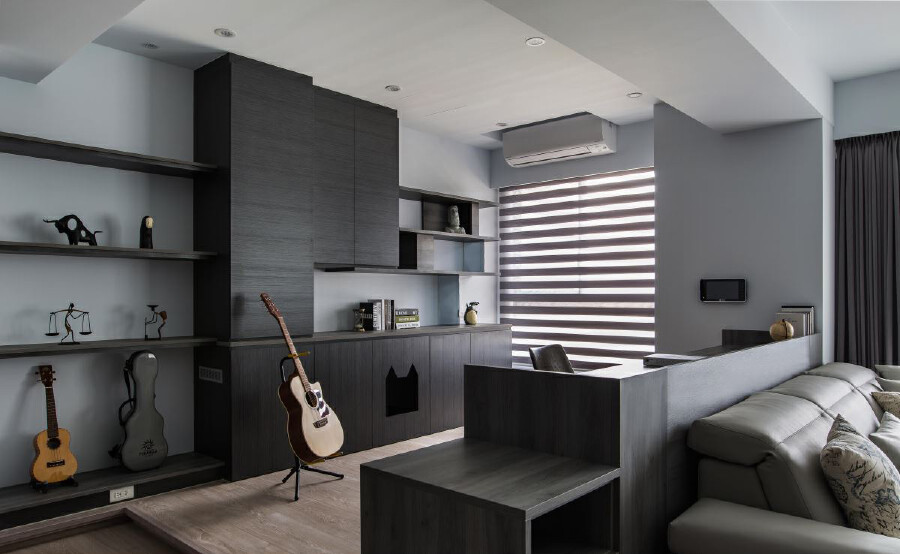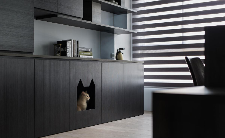 30 坪居宅,是兩個人與一群貓的居住場域,為了平衡愛貓與屋主的生活,設計師將規劃重點放在公領域範圍,並強化收納機能,佐以利落的現代風格,打造出讓主人、寵物都滿意的居家好宅。