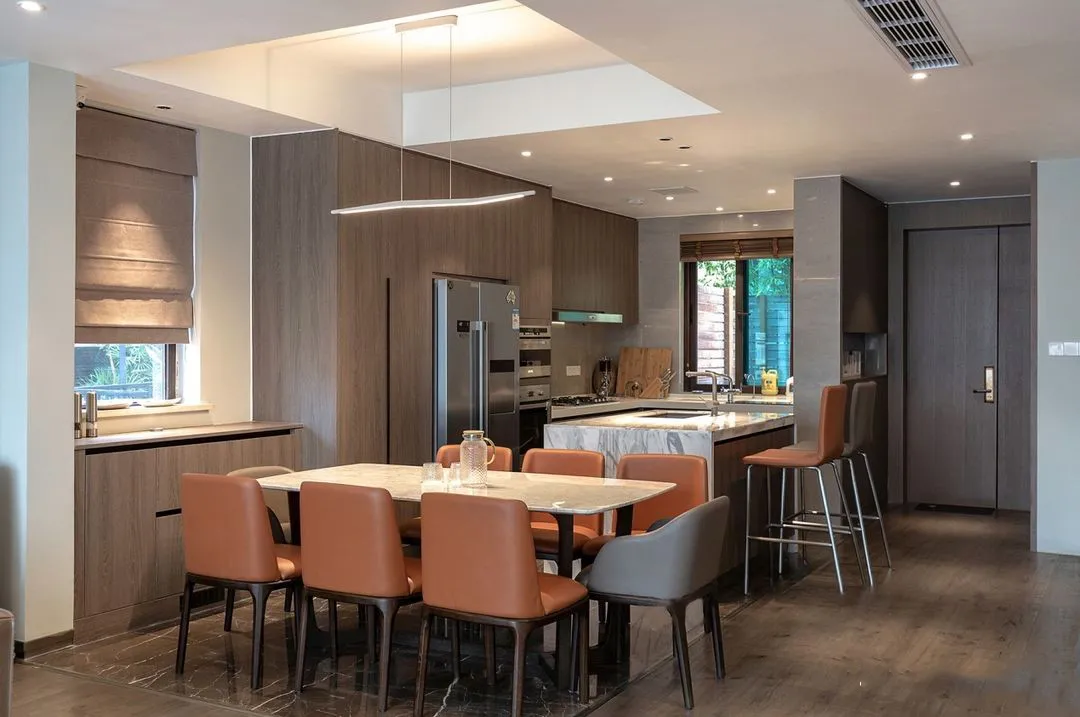 餐廚區採用開放式設計,動線流暢,還方便家人之間進行互動。