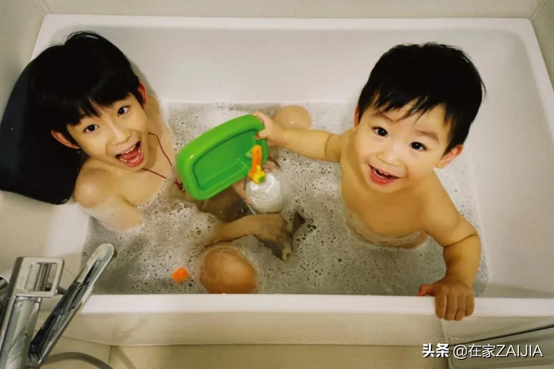 別看浴缸小,兩個小朋友用剛好