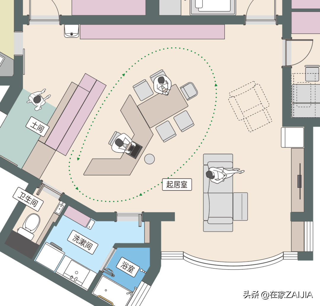 利用島台,建立家庭核心區
