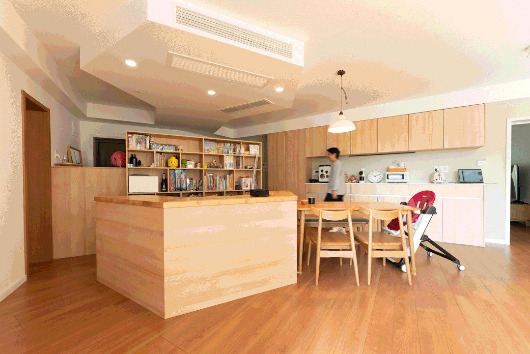 像今天介紹的一家四口,屋主Y在客廳中間建了個大島台 ,看似不按常理出牌,但在他們家,島台卻是化解空間BUG,讓一家四口感情迅速升溫的秘密武器。
