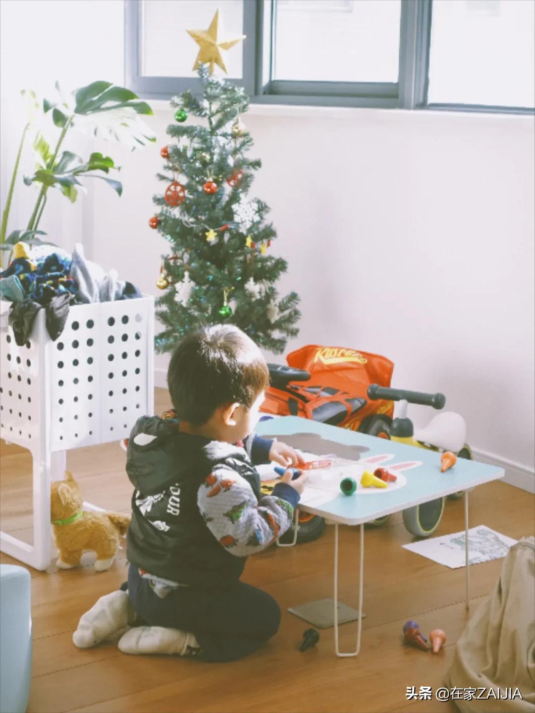 遊戲區由連接客廳的小陽台改造,包進室內後木地板通鋪過去,弟弟能席地而坐玩玩具,沒有高度差的地面,對小朋友來說也更安全。