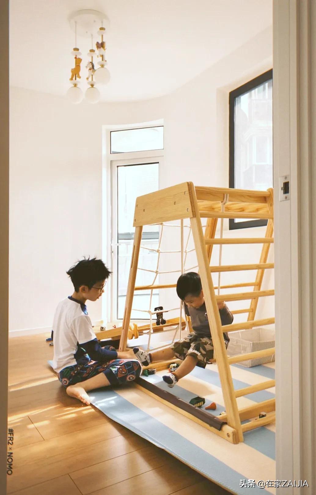 大寶的兒童房內,同樣是以牆面儲物間代替衣櫃,兩個小朋友的衣物分開收納,獨立管理。