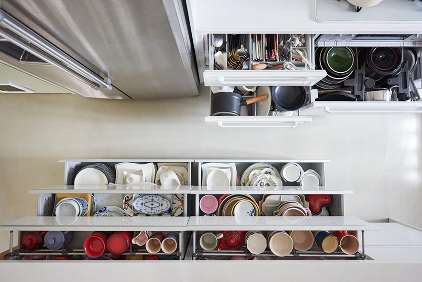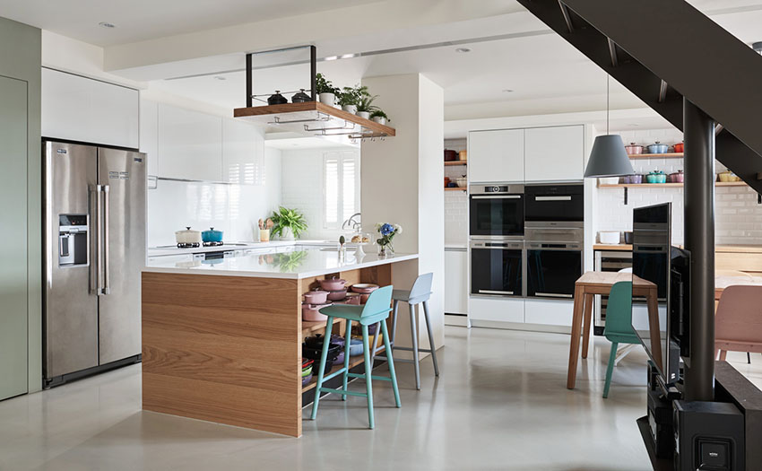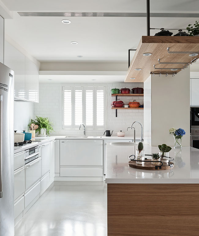 而下方都是滿滿收納,再加上開放式吊櫃,完全不擔心料理道具太多,另外增添設備齊全的智能家電,這真的是愛好料理的太太心中完美的廚房。