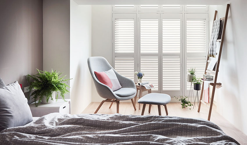 簡單為主的主臥室,牆面塗刷灰色油漆,營造舒適的睡眠環境,而專屬臥室的窗邊小區域,加上一張舒適單椅,成為最溫暖的閱讀角落。