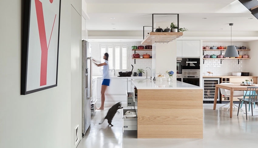 改造後的廚房擁有一個很大的L型料理台,外加一個長達245公分的中島台,不僅可以作為烹飪區,也是孩子們做手工、學習娛樂的好地方。