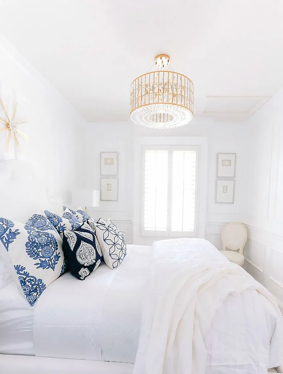 白色具有視覺擴張性的效果,因此小型臥室建議四件套等軟件,多採用淺色用品,除了創造開闊的感覺,淺色織品也讓人覺得舒適。若擔心氛圍過於單調,建議部分用品可挑選有顏色的款式,比如枕頭、抱枕或空調毯,營造出層次變化。