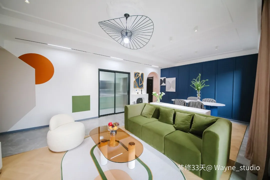 ▲ 使用面積100平,造價20萬(硬裝+軟裝+電器,預算有限,業主自己能做的就沒找師傅),項目坐標:重慶巴南,這是設計師和業主的第二次合作,所以節省了很多磨合的時間,很快確定了風格,2019年7月開始設計,期間因為疫情耽誤了進度,除此之外整個設計過程順利愉快,業主夫妻都喜歡明亮的色調,但又不喜歡太枯燥無味的設計,所以最後才有了現在色彩豐富又舒適的作品