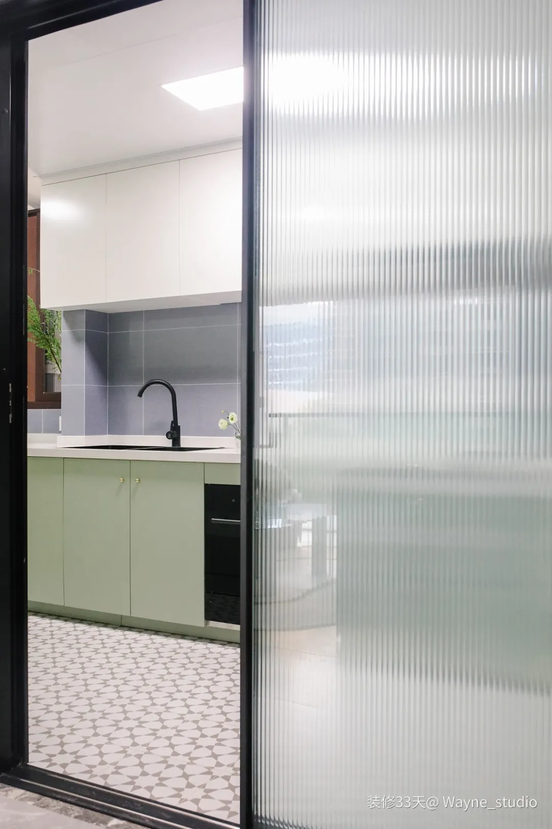 ▲ 廚房採用長虹玻璃移門,隔離油煙的同時保留采光與通透性