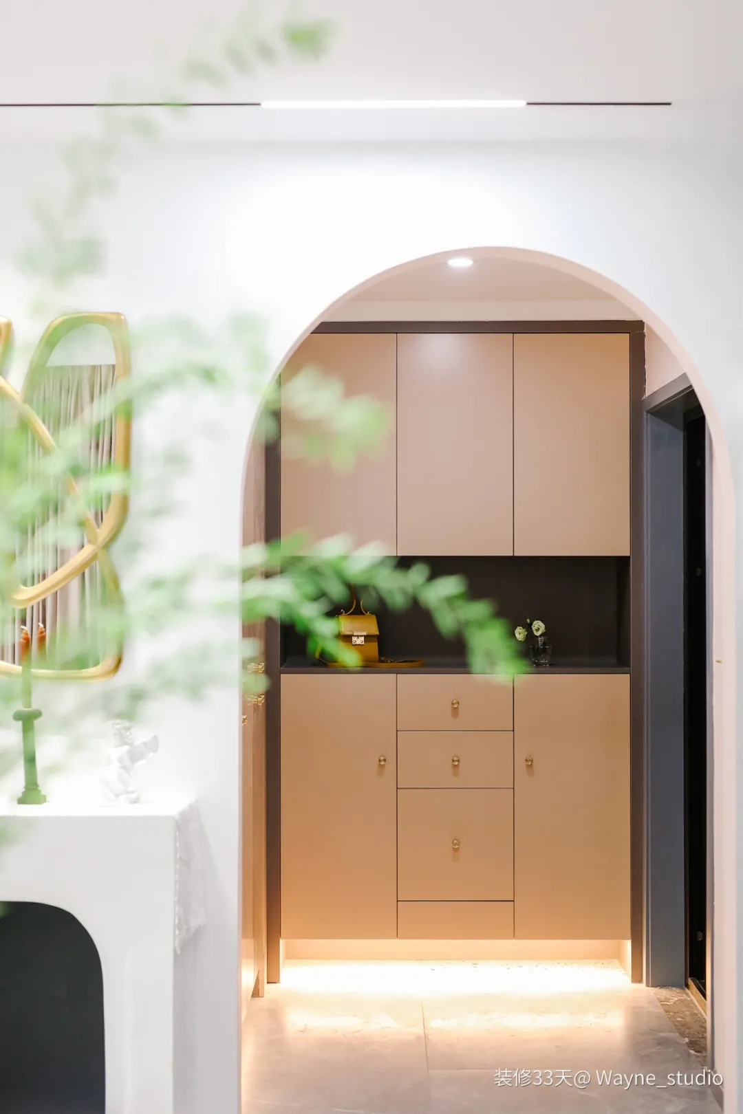 ▲ 玄關與室內通過拱形門洞進行過渡,使回家充滿了儀式感與歸屬感