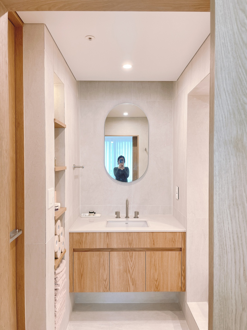 廁所最值得一提的是壁龕收納,除了洗漱櫃還在側牆上挖壁龕置物,不占1㎡。