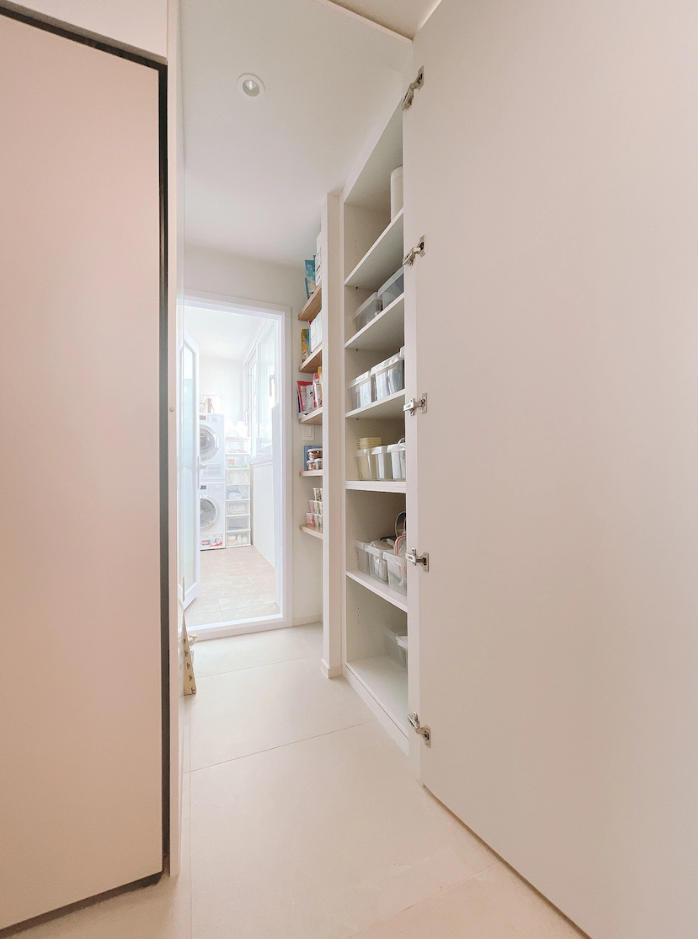 廚房往里走還有個儲藏室,過道的空間都打上櫃子,收納空間妥妥的。