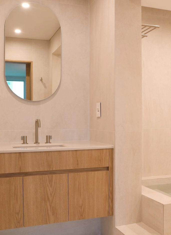讓師傅砌的浴缸做了階梯設計,上下方便,比較貼心。