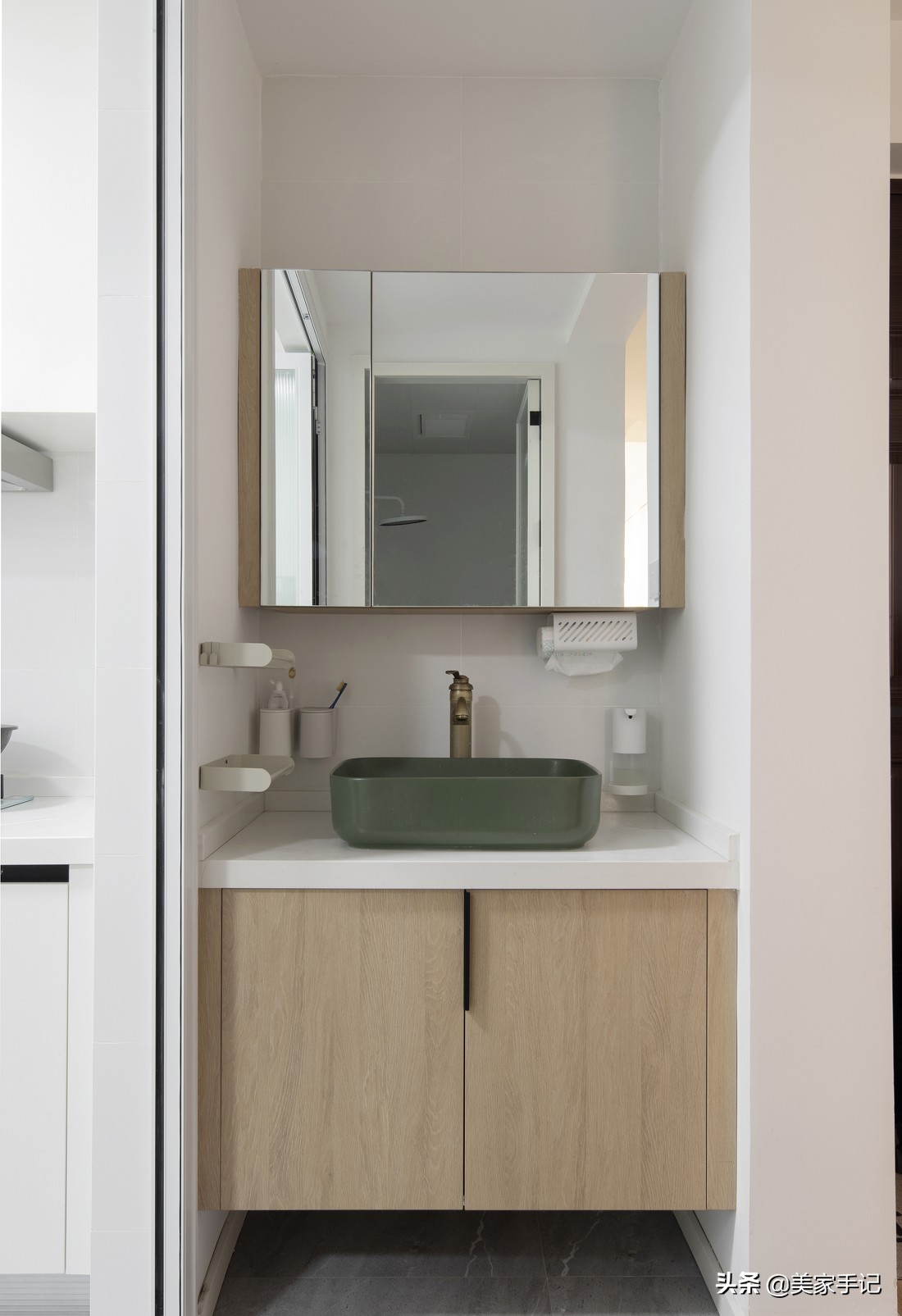 需要補充的是,圖片最左側隱約可見,挪出右側廁所到廚房的洗漱台,這樣既提高了使用效率,空間也顯得敞亮了不少。