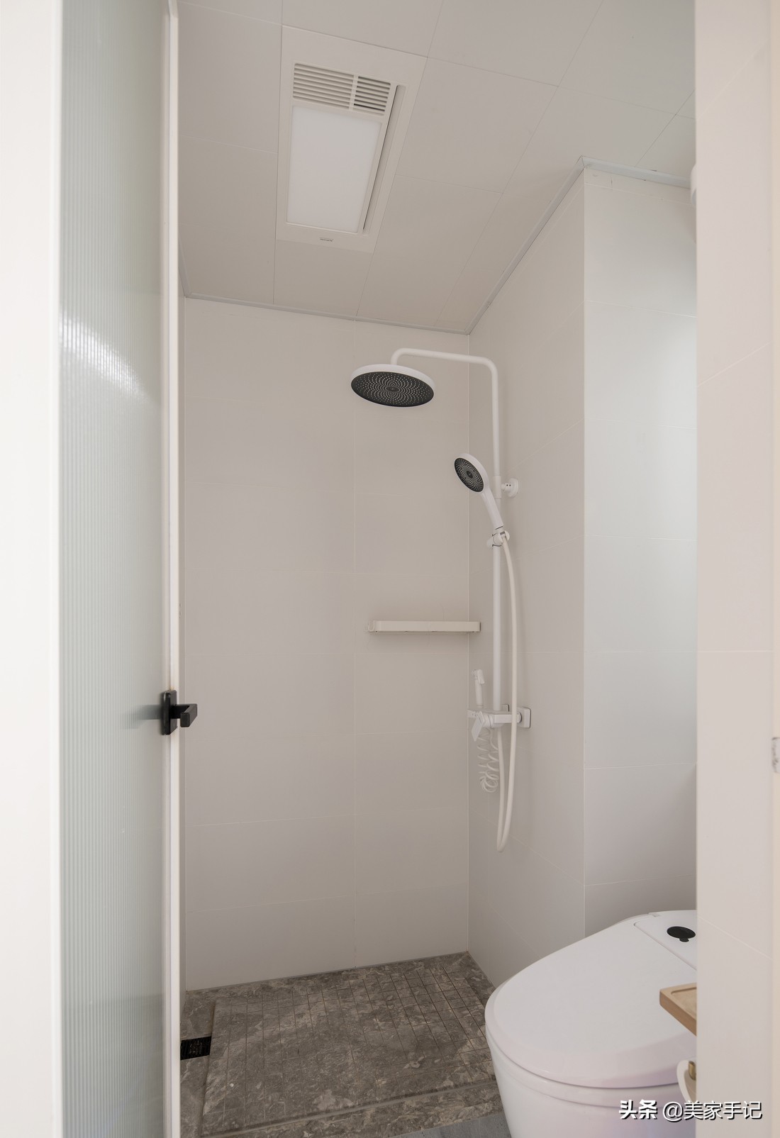最後是全屋僅有的一個廁所,如開頭所述,為提高使用效率,作為幹區的洗漱台就挪到了左側的廚房,然後只保留馬桶和淋浴花灑作為濕區就可以了。至此本文就分享到了這里,感謝大家閱讀。(註:本案文字原創,圖片來源於@壹二設計,如有侵權,請聯繫刪除)