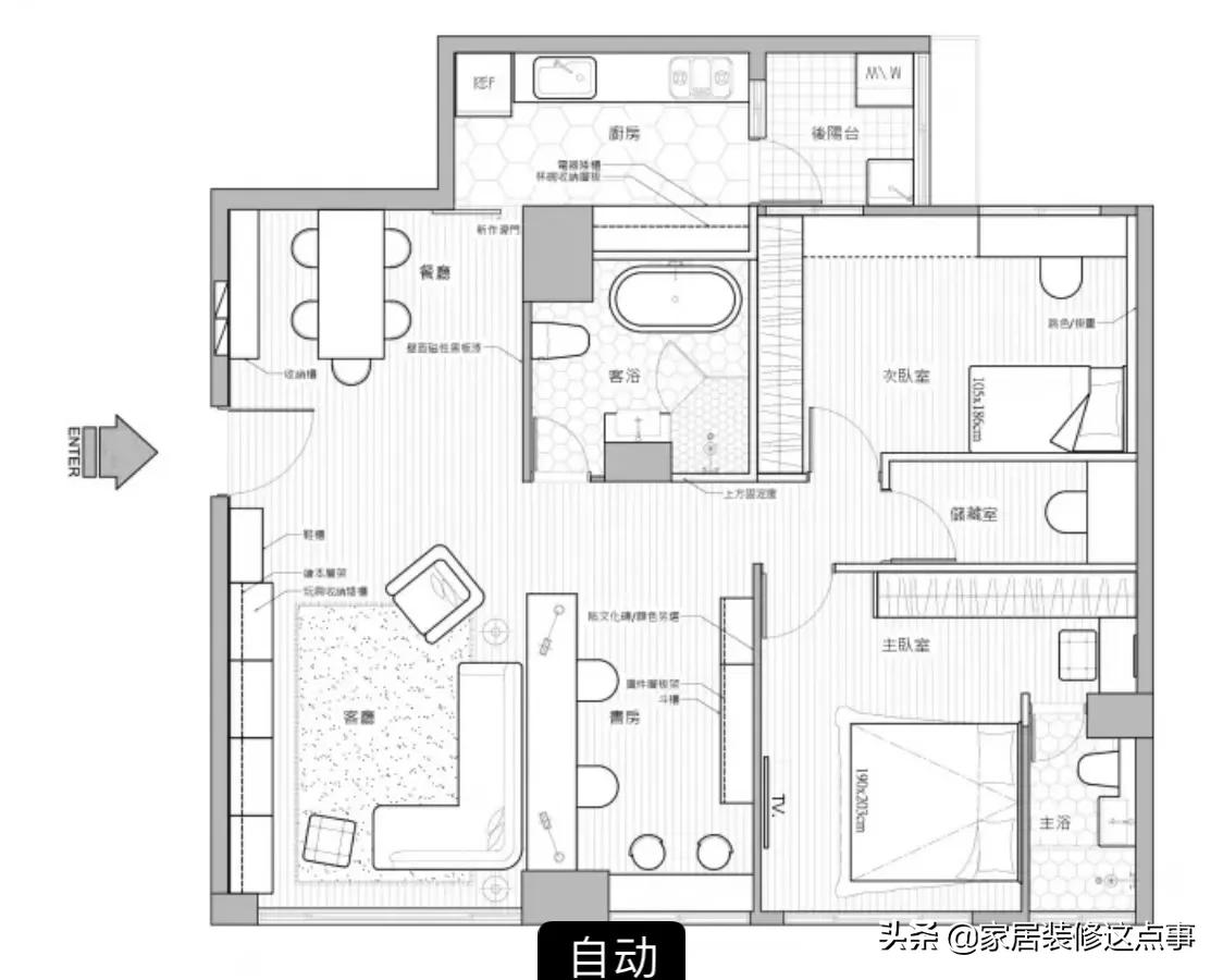 裝潢時為了空間更通透,也為了更方便照看孩子,她把書房與客廳做了打通。