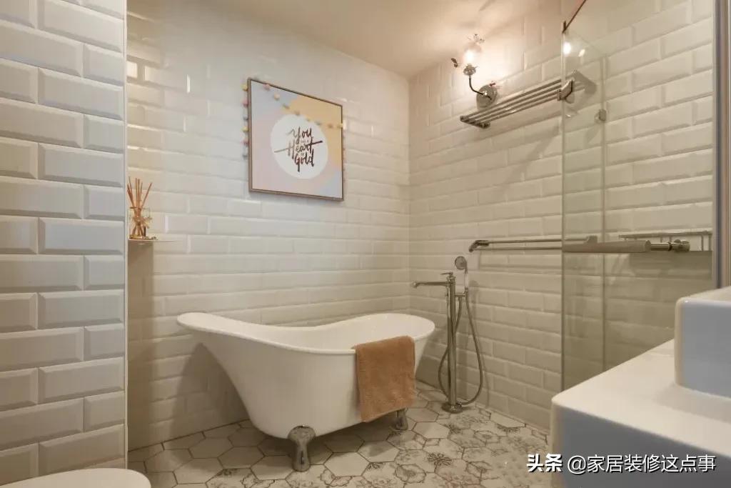 裝潢後封了窗戶,排風換氣用排氣扇代替;整體在奶白色小磚的襯托下也顯寬敞明亮。