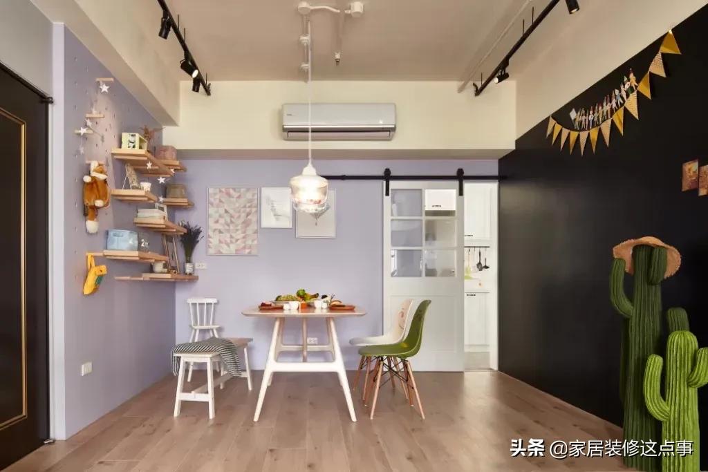 親子活動區域從客廳也延伸到了餐廳,黑板滿足孩子喜歡塗塗畫畫的天性,也避免了孩子亂塗亂畫導致家里其它牆面遭殃;節假日,爸爸媽媽會在黑板牆上寫上相應的祝福語,增加節日的儀式感。
