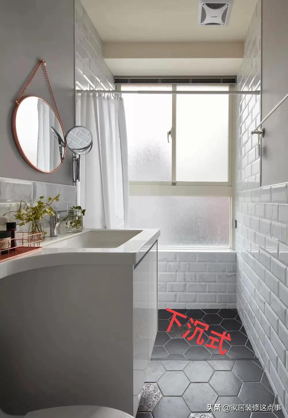 兩個廁所都屬於下沉式衛浴,搭配下沉式淋浴房設計,相對比大理石擋水條視覺效果更美觀。