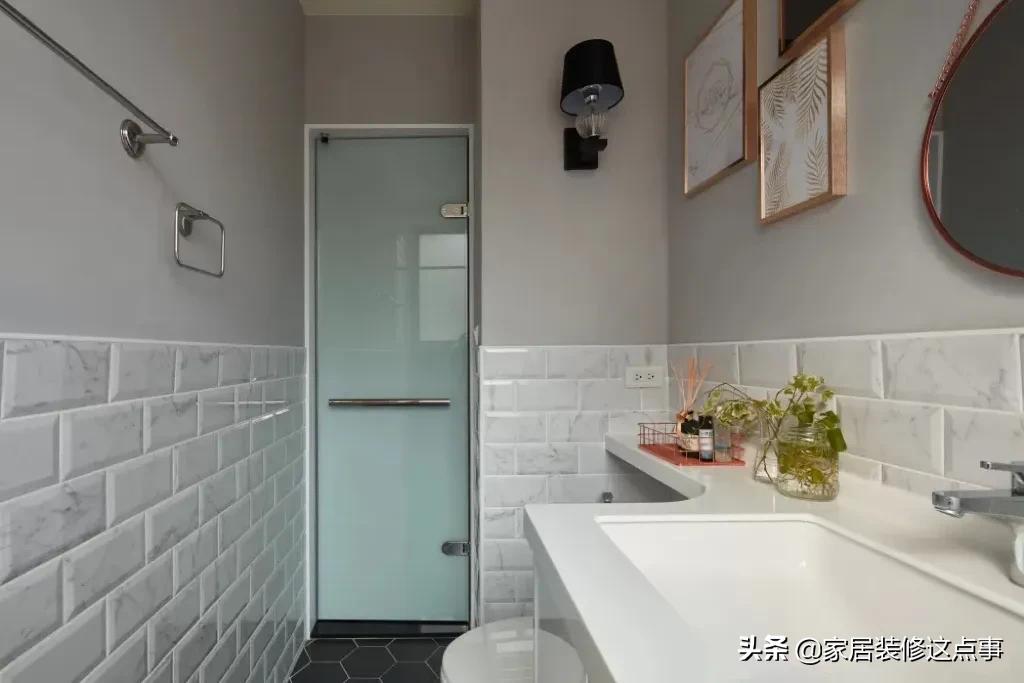 主衛幹區牆面半磚半防水漆,相對比全磚更溫馨、也多了份柔和之美。