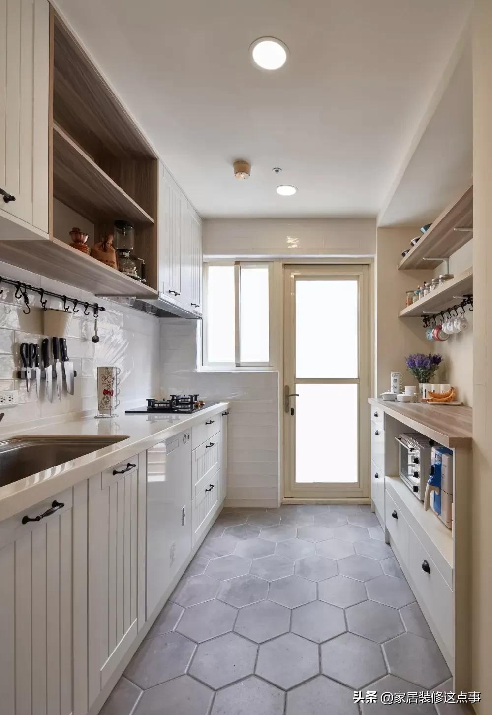 櫥櫃上方的開放式隔板雖然說較容易積灰,但是也讓整個櫥櫃更有層次感,視覺效果也美觀不壓抑。