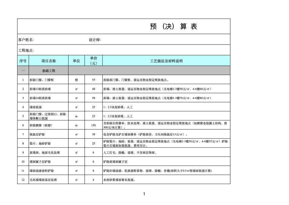 在房屋裝潢過程中,對於消費者們而言,最關心的是成本的問題,大家都想在最短的裝潢時間內,想方設法的降低整體的成本,想知道詳細的報價明細。在實際的裝潢過程中,每個人都希望房屋裝潢的效果好,預算在掌控範圍內,這就要求大家在實際操作中提前預算好。下面給大家分享一份非常詳細的裝潢報價清單(2019),地域不同報價可能有偏差,僅供參考!
