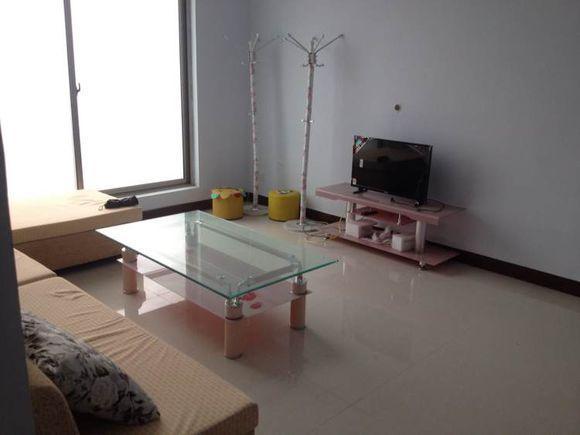 客廳的裝潢,客廳鋪的瓷磚,刷的大白牆,客廳的落地窗真不錯,采光性很好。沙發是新買的,客廳的電視牆沒有做裝潢,就是一面白牆。