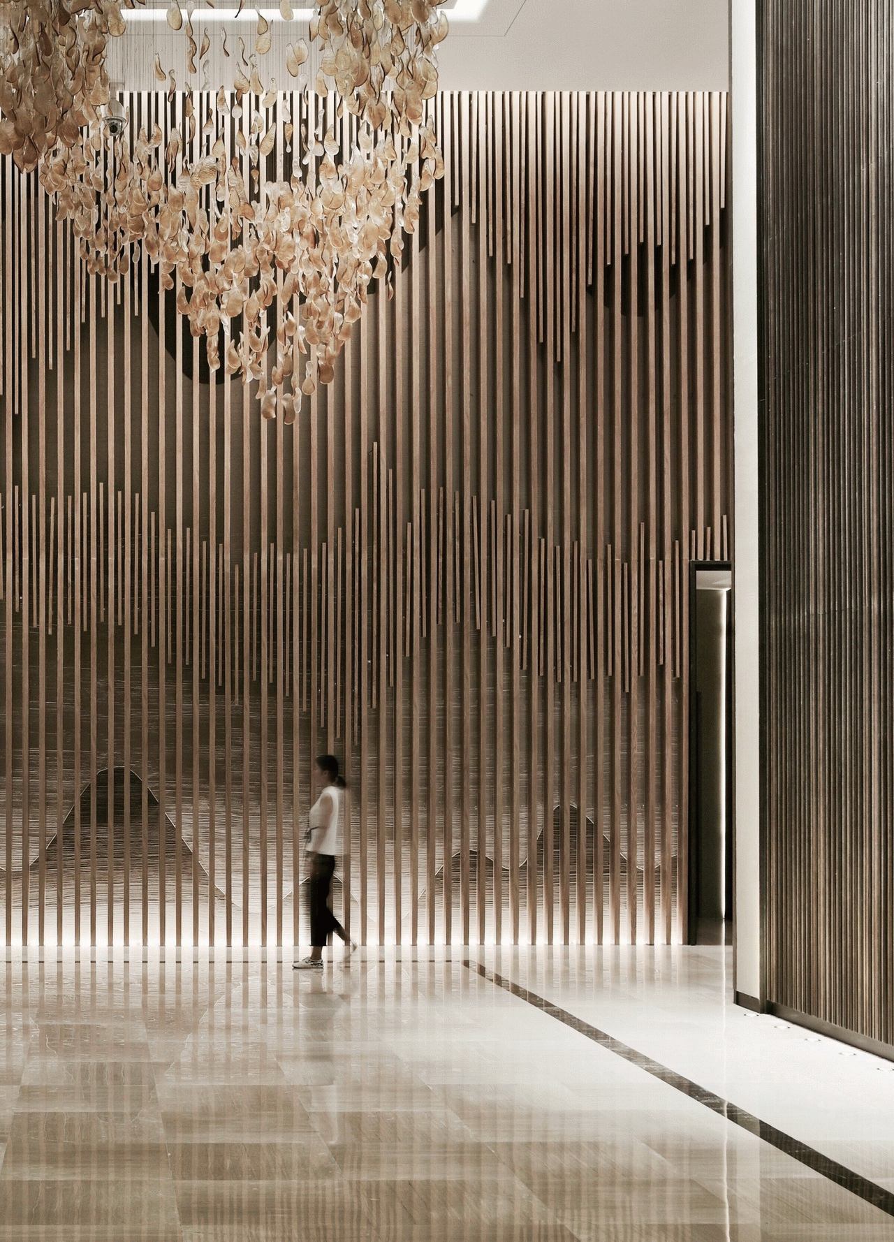 建築由義大利著名設計師歐德·龐德亞力傾力打造,汲取銀杏樹的華美意向,構築150米錢塘兩岸地標尺度。軟裝設計由知名室內設計公司布魯盟擔綱,延續建築的藝術力量,將銀杏樹進行重新幻化和演繹,在空間上形成自然天成的意境之美。
