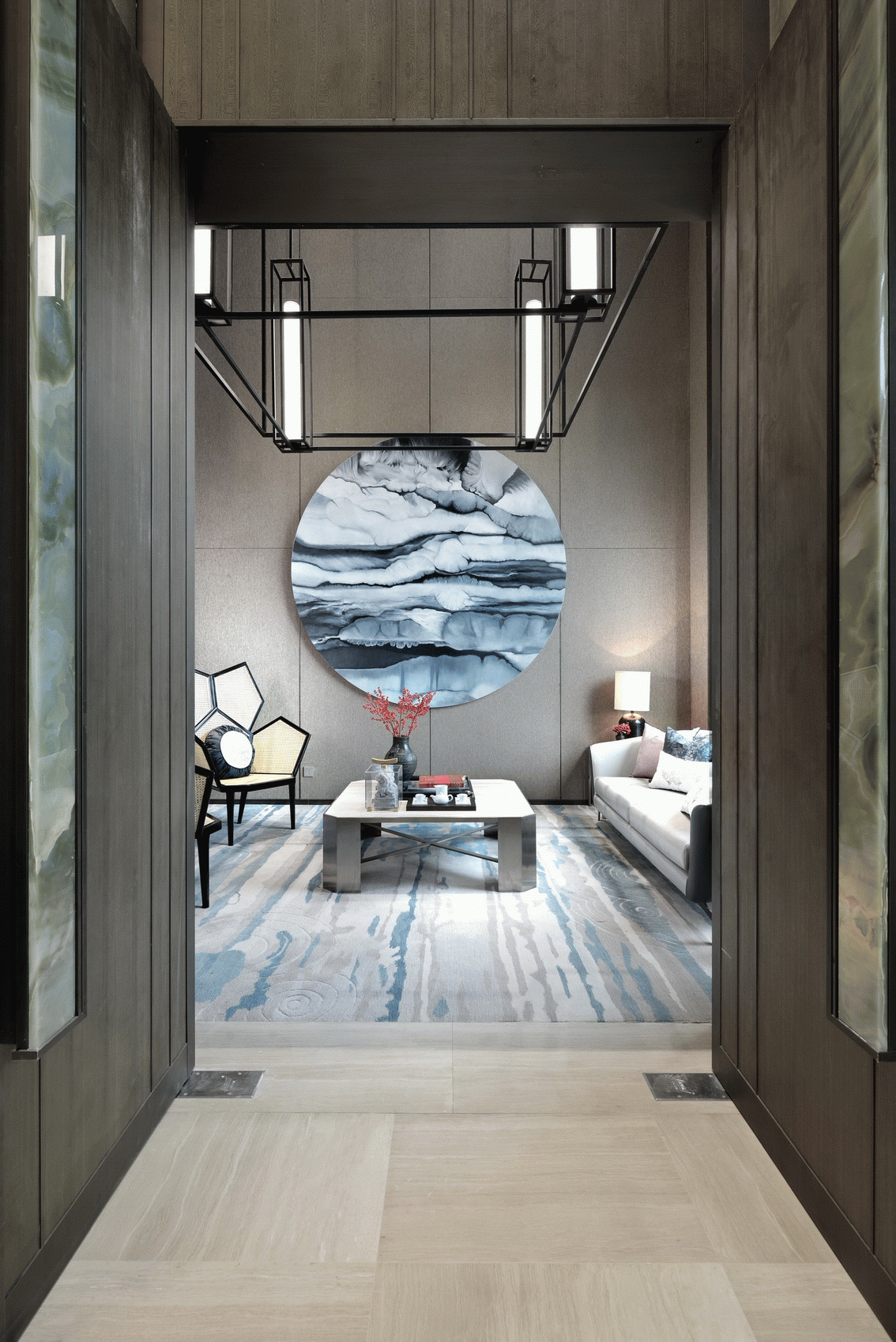 無論是接待,中廳或是內畫廊與展廳,都富有靈感,洽談區與VIP區結合書架擺台,軟裝陳設,筆墨書卷,讓人湧現深遠而寧靜的感動。