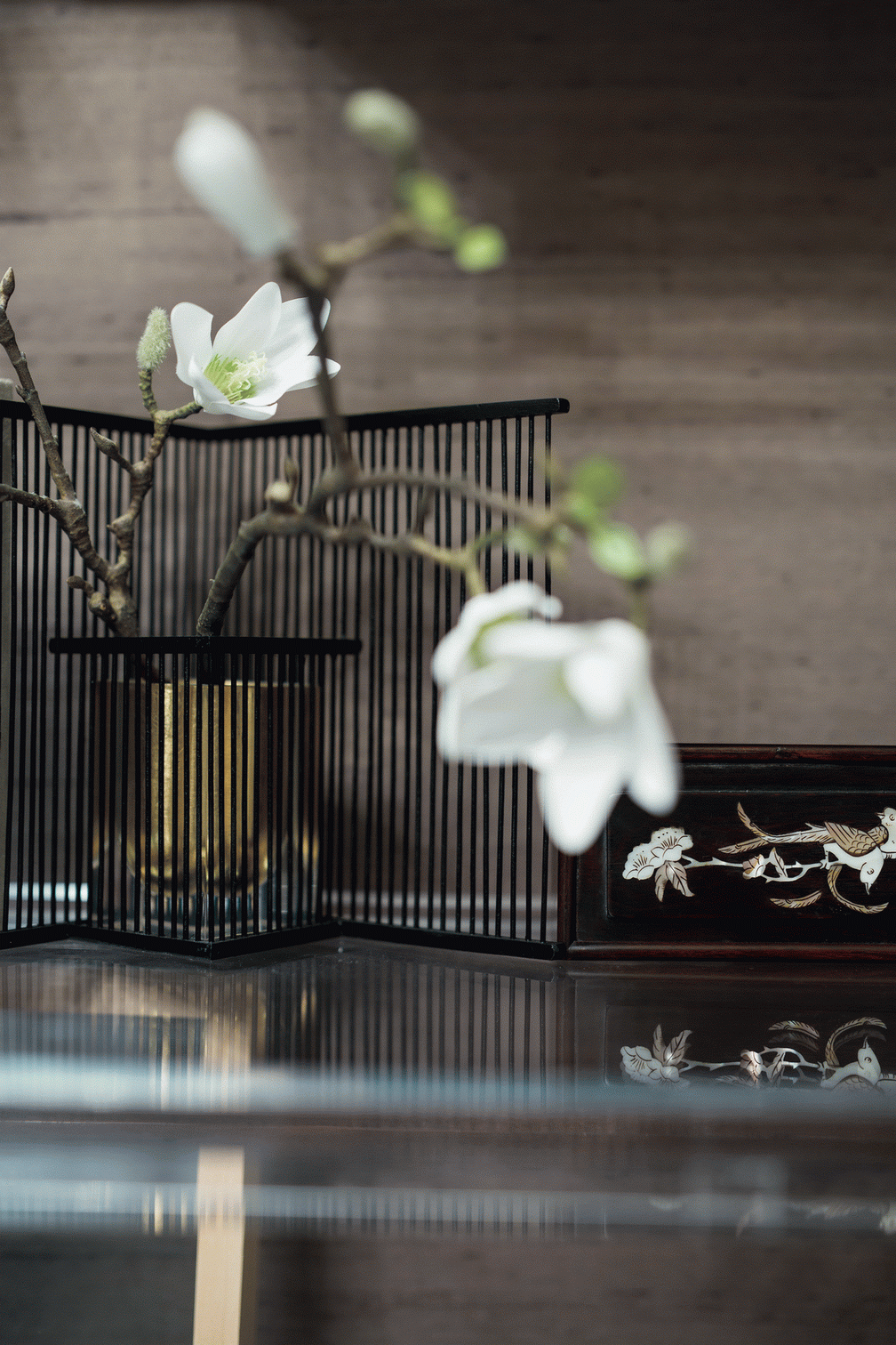 高級定制的花藝、飾品簡約不失奢華,恰到好處地呈現了一個現代東方美感世界。